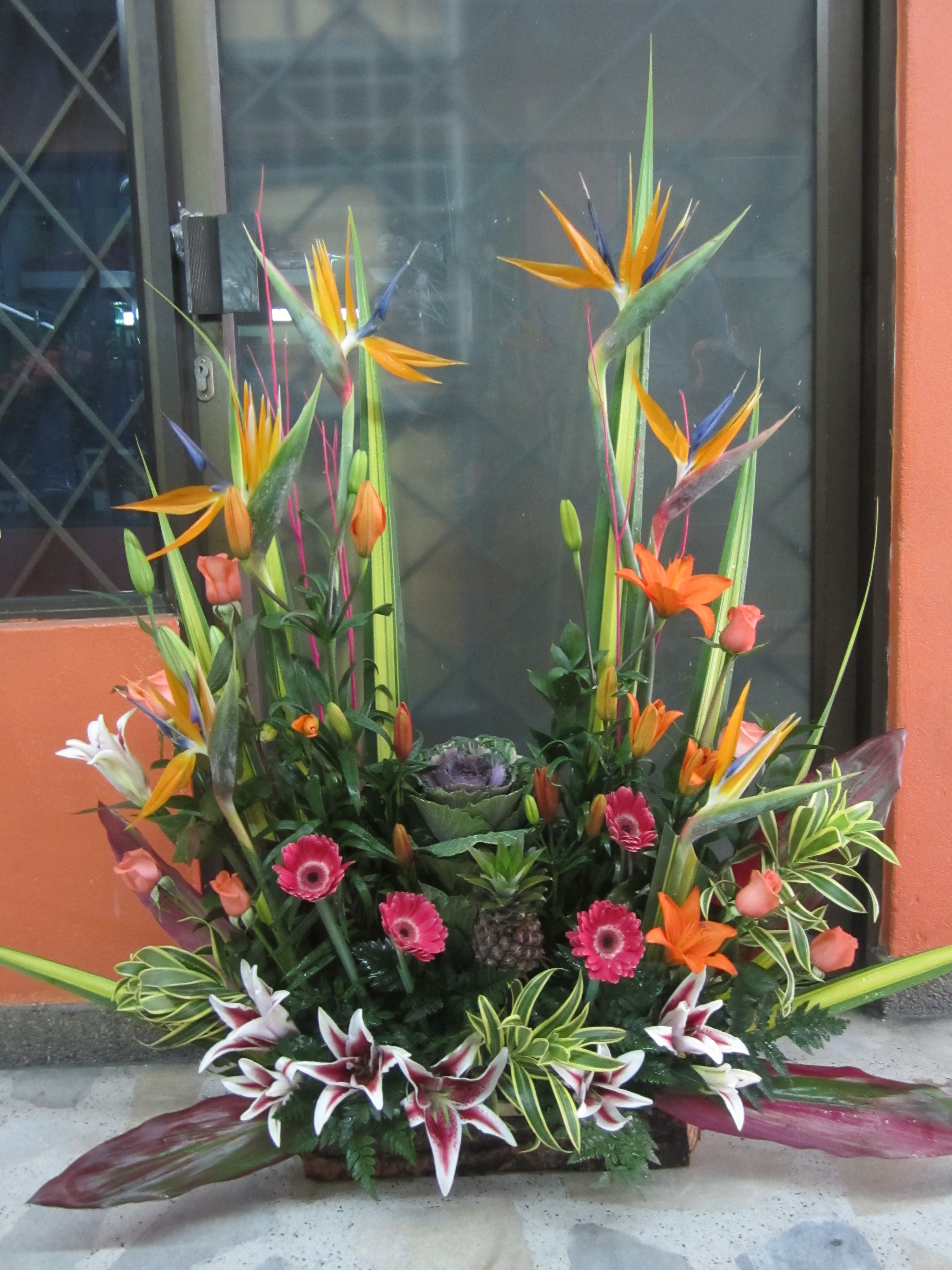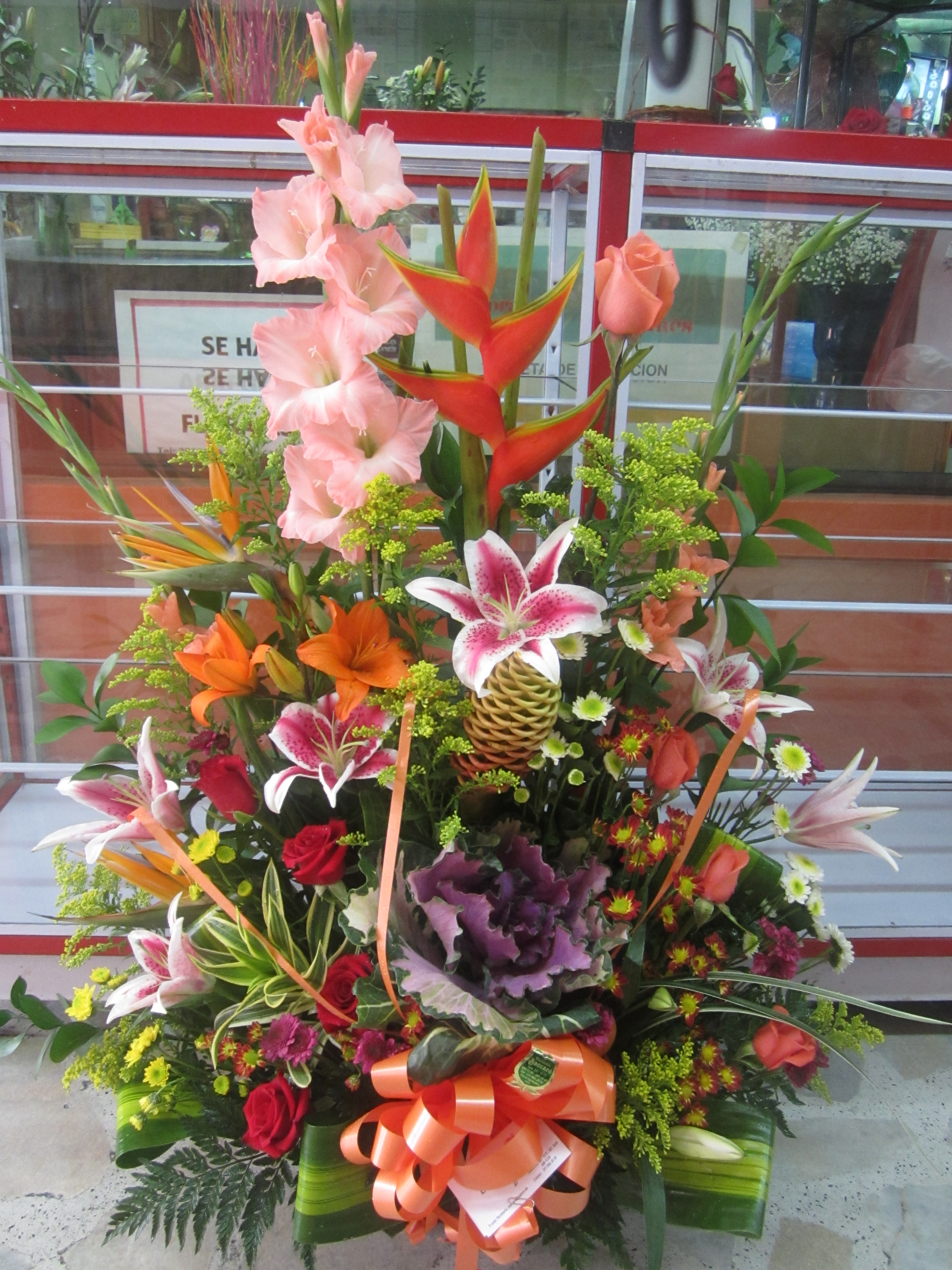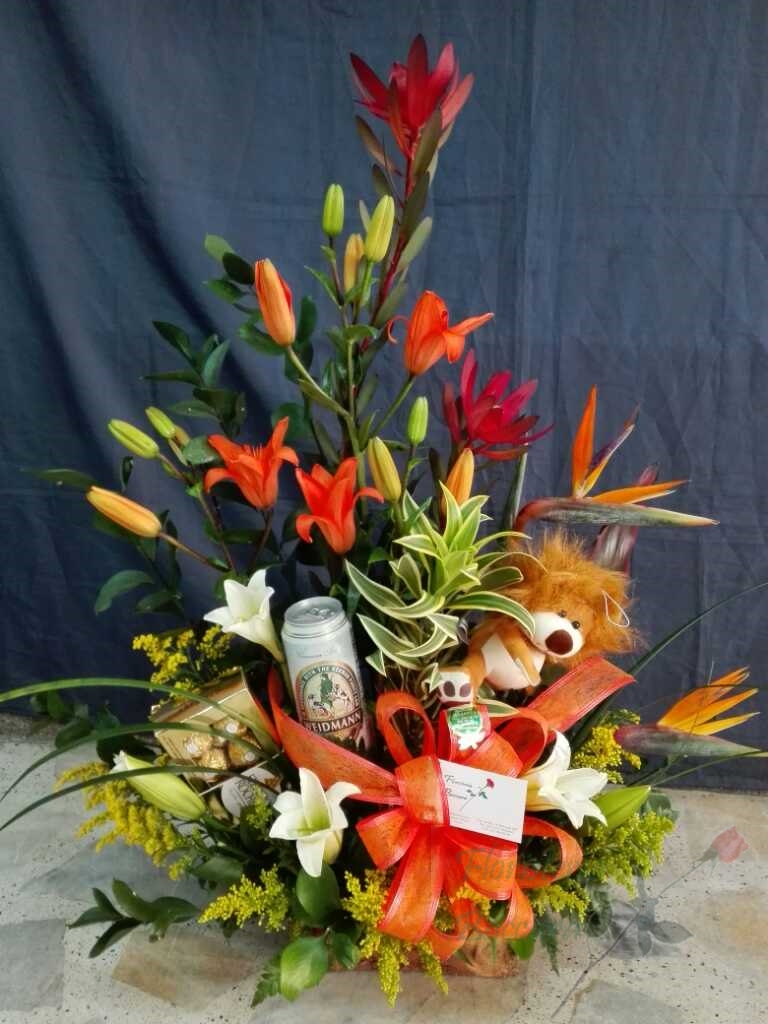 Hermosos arreglos en flores exóticas como lo son las aves del paraíso, las heliconias, los cymbidium, los lirios del japón blancos, fucsias, rosados, amarillos, naranjas, las gerberas de todos los colores,falegnosis, repollas, campanas de irlanda, crisantemas, orquídeas, tulipanes, canción de la india, ginger, galateas, maracas, anturios, papiros, hojas rojas…. en fin una gran variedad. Al gusto de todos.