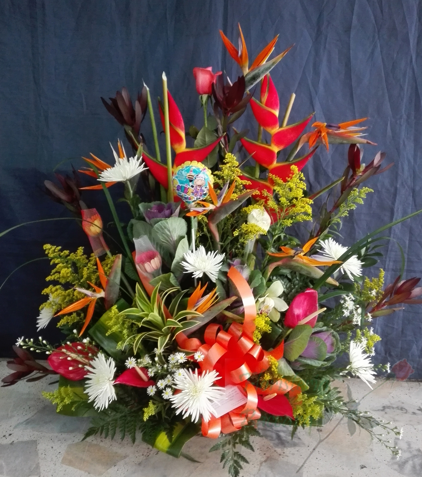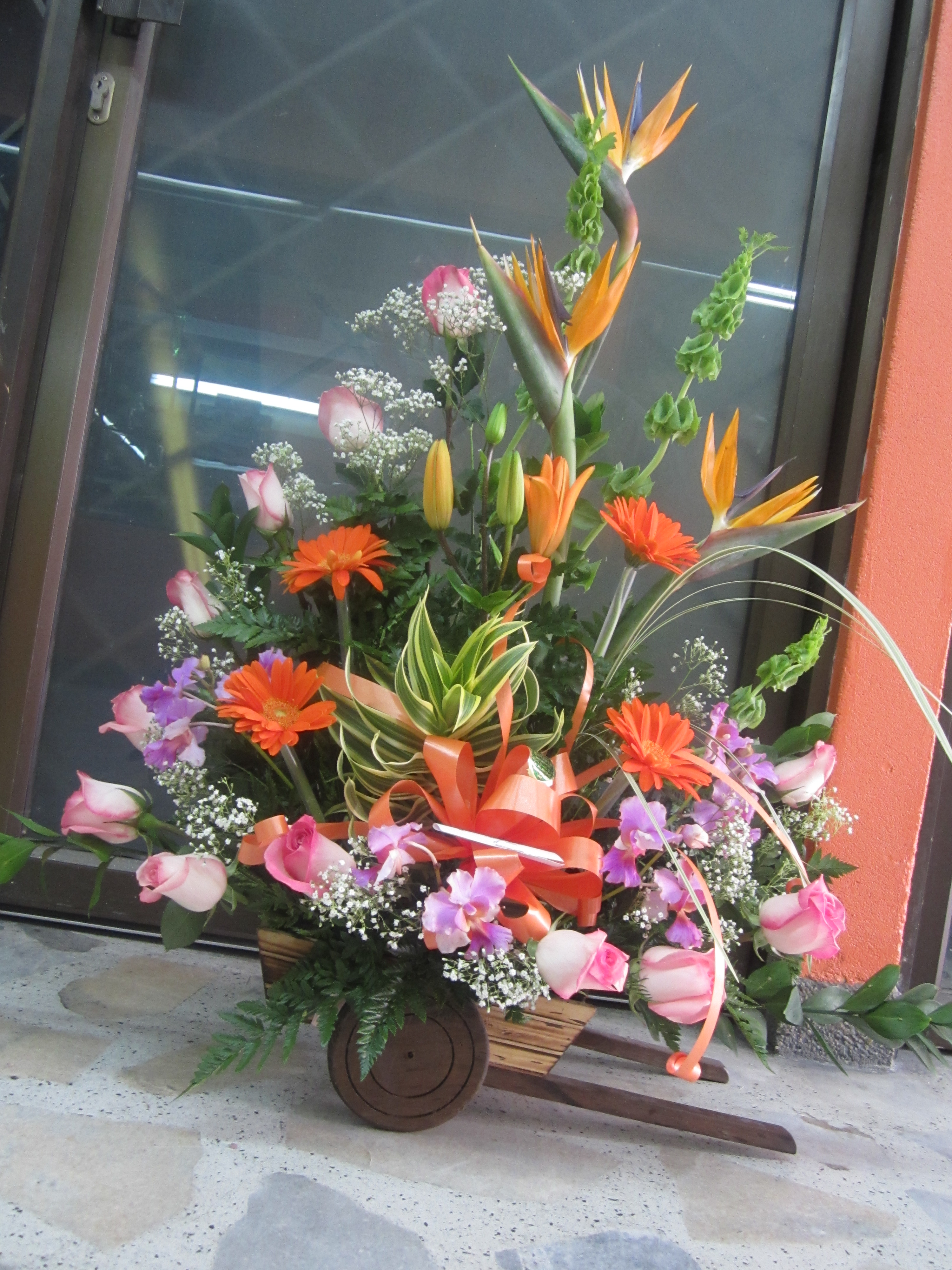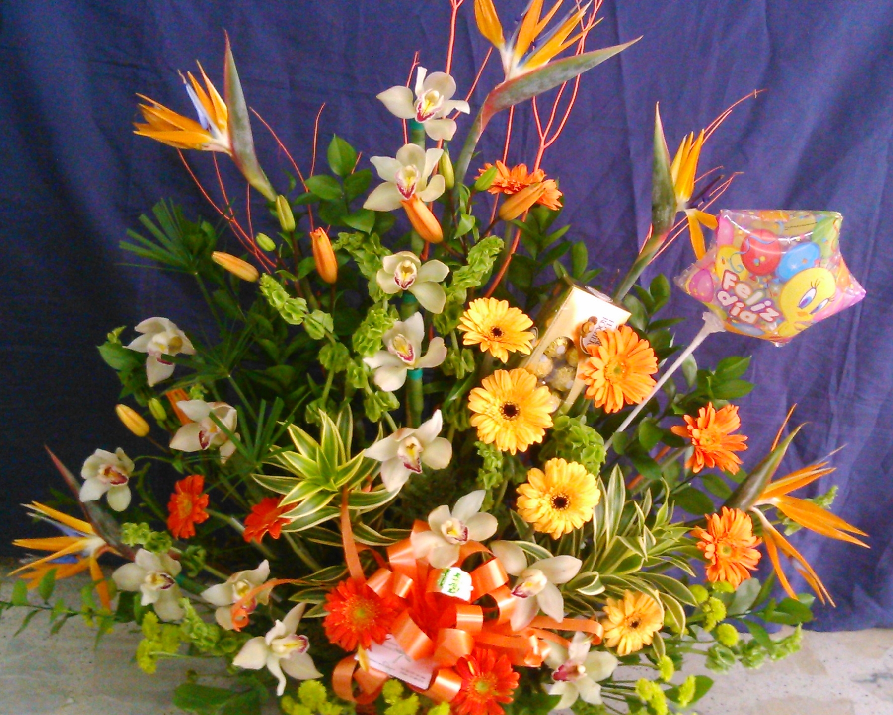 Hermosos arreglos en flores exóticas como lo son las aves del paraíso, las heliconias, los cymbidium, los lirios del japón blancos, fucsias, rosados, amarillos, naranjas, las gerberas de todos los colores,falegnosis, repollas, campanas de irlanda, crisantemas, orquídeas, tulipanes, canción de la india, ginger, galateas, maracas, anturios, papiros, hojas rojas…. en fin una gran variedad. Al gusto de todos.